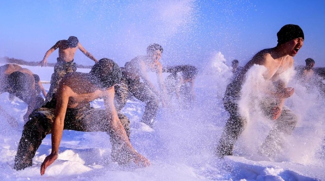 黑龍江邊防武警零下30℃赤膊耐寒訓(xùn)練超燃